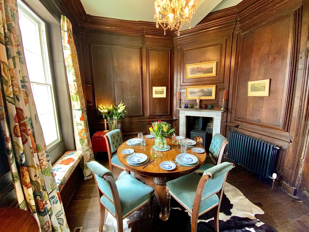 The Annex has a flexible layout and can be hired in a two bedroom one bathroom format or a four bedroom two bathroom format. There is a large drawing room, a panelled dinning room and compact but fully equipped kitchen.